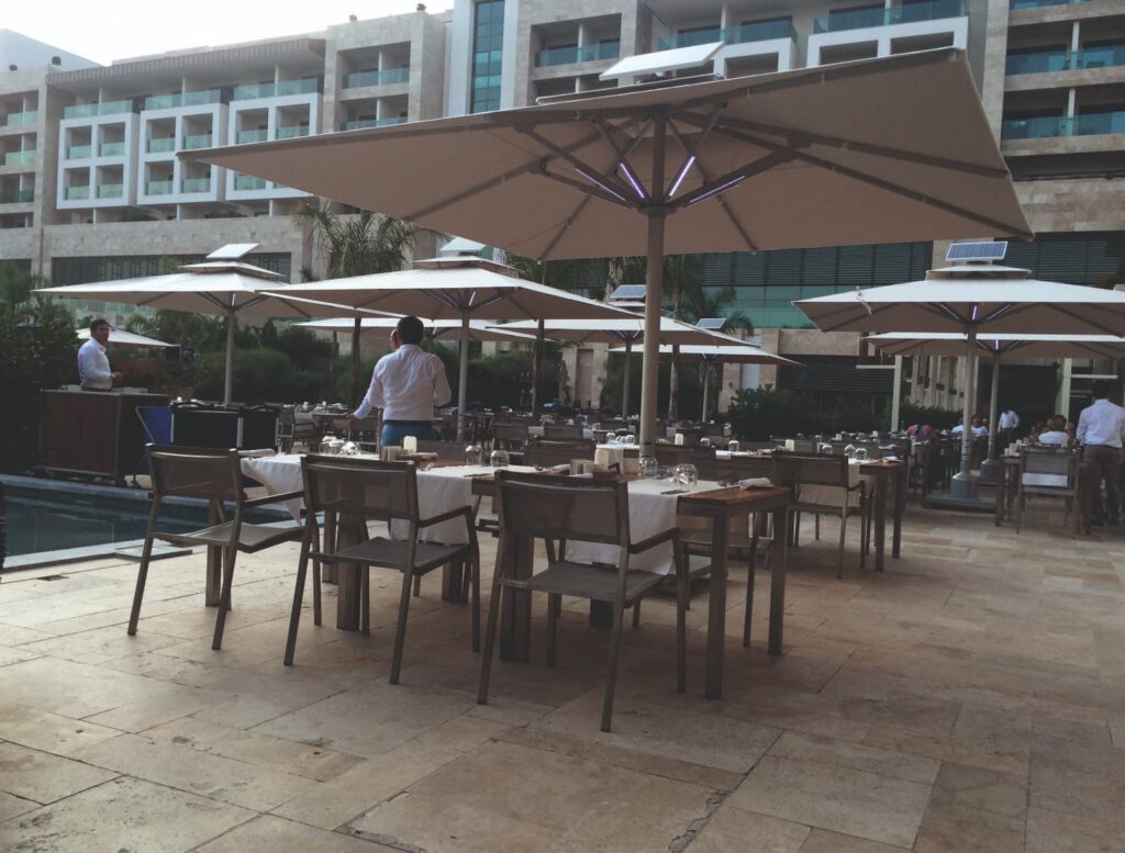 Mevcut şemsiyeler dışında, kendi segmenti içinde ilk olma özelliği taşıyan bu model, bütün fonksiyonlarını uzaktan kumanda ile yapmaktadır. Mekanik şemsiye modeline ilave olarak , Güneş enerji paneli, Kesintisiz güç kaynağı ve Elektornil kontrol paneli sayesinde uzaktan kumanda ile açma/kapama, Ledli sistem aydınlatma yapabilen ve rüzgarlı hava şartlarında otomatik olarak şemsiyeyi kapatma özelliğine sahiptir. Ortalama 6-8 saat aydınlatma sağlamaktadır. Çalışma gerilimi 12V’dur. Ayrıca gerekli görüldüğünde mekanik olarak açma ve kapama yapmakta mümkündür.